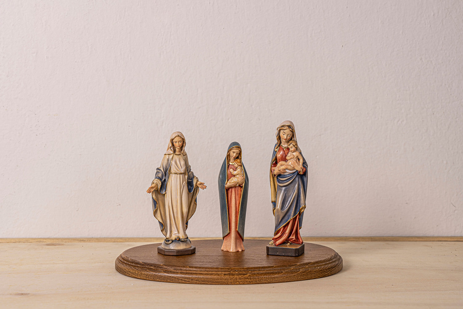 Unsere Madonnen-Schnitzereien aus Holz vereinen anmutige Form und tiefen Glaubensausdruck. Ob klassisch geschnitzte Marienfigur oder moderne Darstellungen: Jede holzgeschnitzte Ausführung spiegelt die spirituelle Ruhe und Reinheit Marias wider. Aus dem Grödner Tal stammend, überzeugen unsere holzgeschnitzten Madonnen durch feine Details und meisterhafte Handarbeit.