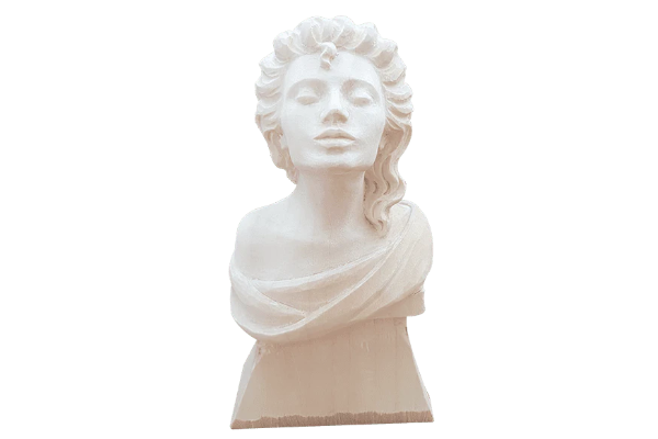 Büste als Instrumentenkopf aus hellem Zirbenholz