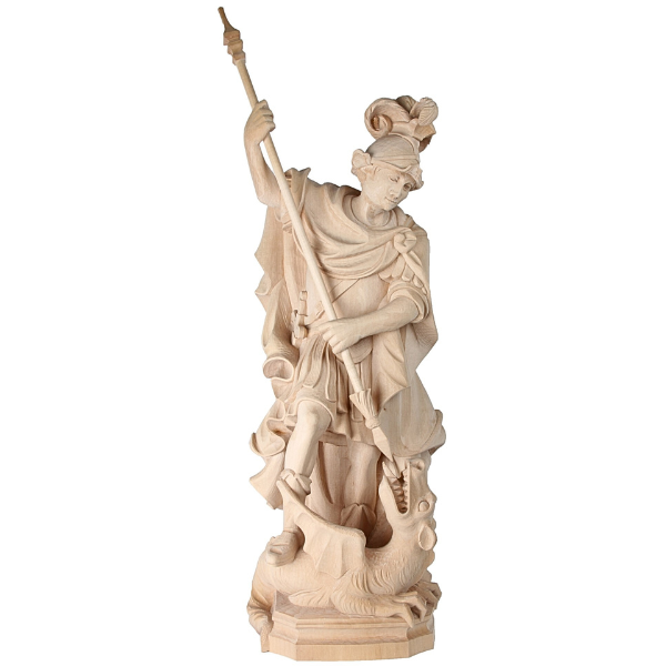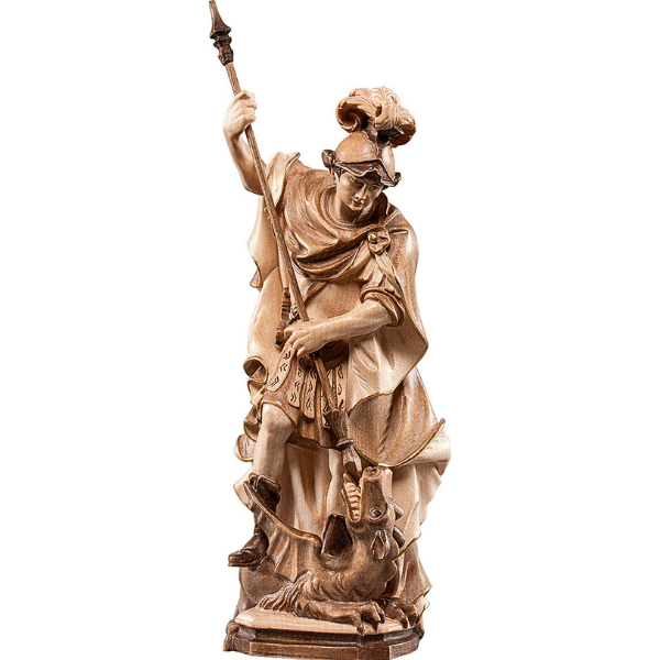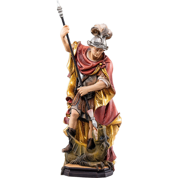 Die Grödner Holzschnitzerei Heiliger Georg stehend wird nach dem Entwurf eines Bildhauers mit viel Liebe und hohem holzschnitzer handwerklichem Anteil gefertigt, wodurch jede holzgeschnitzte Figur ein geschnitztes Unikat ist. Durch die Handbemalung der geschnitzten Holzfigur können geringfügige Abweichungen zur Abbildung vorliegen.