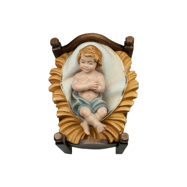 Die Grödner Holzschnitzerei Jesuskind Hirtenkrippe wird nach dem Entwurf eines Bildhauers mit viel Liebe und hohem holzschnitzerei handwerklichen Anteil gefertigt, wodurch jede holzgeschnitzte Figur ein geschnitztes Unikat ist. Durch die Handbemalung der geschnitzten Holzfigur können geringfügige Abweichungen zur Abbildung vorliegen.