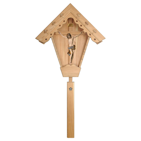 Die Grödner Holzschnitzerei Feldkruzifix Barock Lärche wird nach dem Entwurf eines Bildhauers mit viel Liebe und hohem holzschnitzerei handwerklichen Anteil gefertigt, wodurch jede holzgeschnitzte Figur ein geschnitztes Unikat ist. Durch die Handbemalung der geschnitzten Holzfigur können geringfügige Abweichungen zur Abbildung vorliegen.