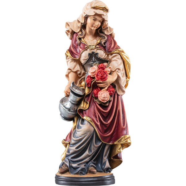 Die Grödner Holzschnitzerei Heilige Elisabeth mit Rosen wird nach dem Entwurf eines Bildhauers mit viel Liebe und hohem holzschnitzer handwerklichem Anteil gefertigt, wodurch jede holzgeschnitzte Figur ein geschnitztes Unikat ist. Durch die Handbemalung der geschnitzten Holzfigur können geringfügige Abweichungen zur Abbildung vorliegen.