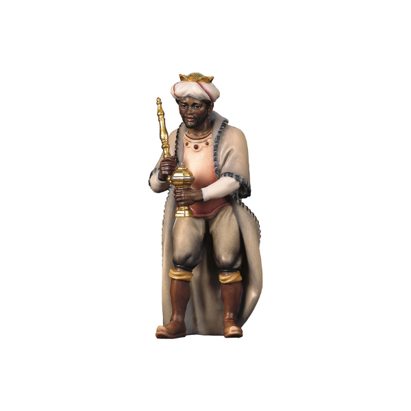 Die Grödner Holzschnitzerei König Balthasar Hirtenkrippe wird nach dem Entwurf eines Bildhauers mit viel Liebe und hohem holzschnitzerei handwerklichen Anteil gefertigt, wodurch jede holzgeschnitzte Figur ein geschnitztes Unikat ist. Durch die Handbemalung der geschnitzten Holzfigur können geringfügige Abweichungen zur Abbildung vorliegen.