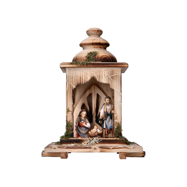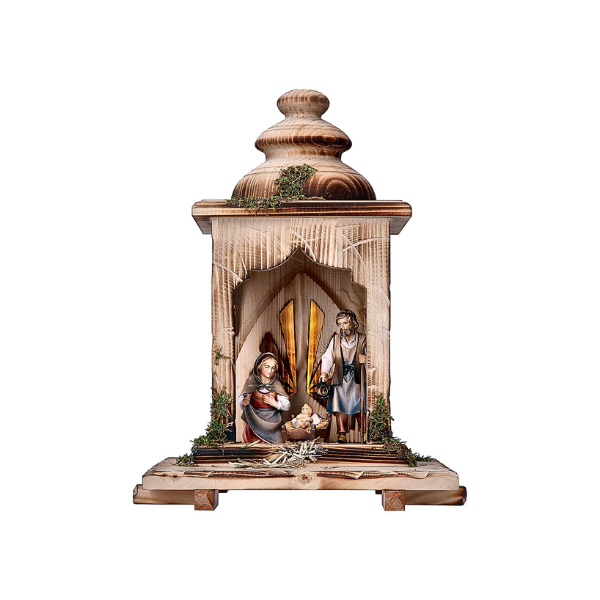 Die Grödner Holzschnitzerei Krippenset 5 teilig im Laternenstall Hirtenkrippe wird nach dem Entwurf eines Bildhauers mit viel Liebe und hohem holzschnitzerei handwerklichen Anteil gefertigt, wodurch jede holzgeschnitzte Figur ein geschnitztes Unikat ist. Durch die Handbemalung der geschnitzten Holzfigur können geringfügige Abweichungen zur Abbildung vorliegen.